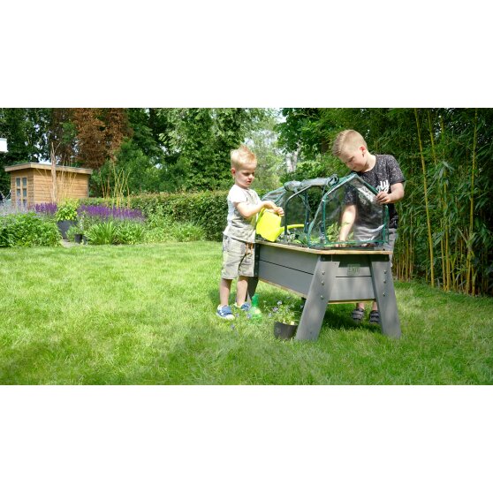 Mit dem EXIT Aksent Hochbeet L mit Gewächshaus und Gartengeräten lernen Kinder spielend mit der Natur umzugehen. Erde, Wasser, Blumen und Pflanzen? Die idealen Zutaten für Kinder um zu lernen wie die Natur zusammenhängt. Sucht zusammen die Pflänzchen aus, die in die Erde eingepflanzt werden können, denn Kinder können mit den Hochbeeten von EXIT Toys selbst für ihre Pflänzchen sorgen.