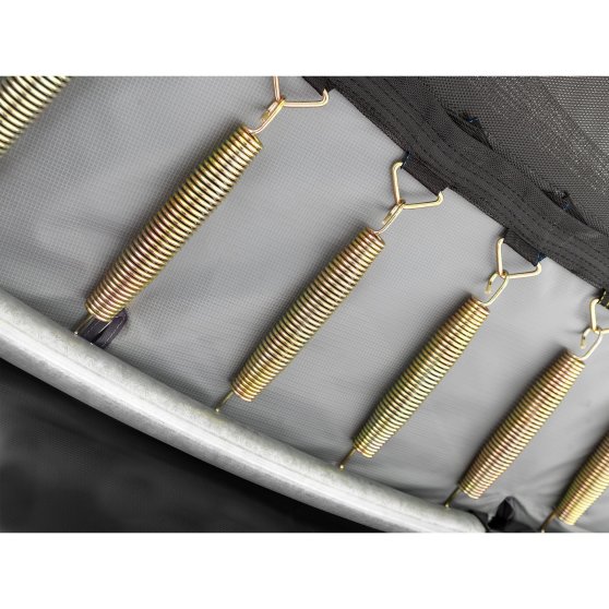 EXIT Elegant Premium Trampoline sind nicht nur schön und von hoher Qualität, sondern auch noch langlebig. Der Rahmen ist galvanisiert und anschließend pulverbeschichtet, sodass Rost keine Chance hat. Die extra langen doppelkonischen Premium-Federn, die 21,6 cm lang sind, sorgen für die ultimative Sprungerfahrung mit einem perfekten Rückprall und weicher Landung. Auch die Schürze des Schutzrandes ist länger als gewöhnlich und die Füllung des Schutzrandes ist dicker im Vergleich mit den Standard EXIT Trampolinen. Die extra dicke PVC oberste Schicht auf dem Schutzrand sorgt schließlich dafür, dass dieser länger hält, also super langlebig!