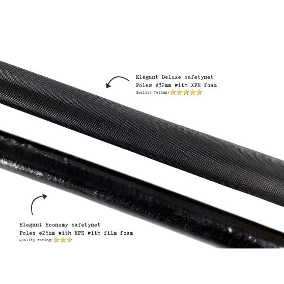 Welcher Typ Schaum wird für die Umrandung der Pfosten des Schutznetzes benutzt? Der weiche Basis-Schaum sorgt dafür, dass du dich nicht an den Pfosten verletzten kannst. Der XPE-Schaum ist dazu noch extra dick und von absoluter Topqualität.