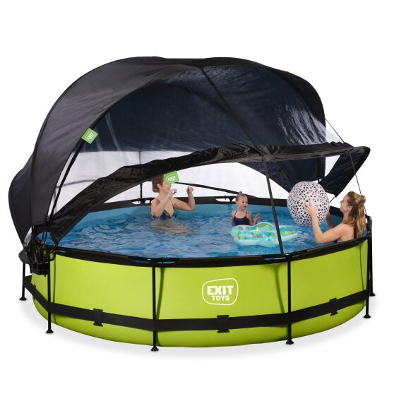 EXIT Lime Pool ø360x76cm mit Filterpumpe und Abdeckung und Sonnensegel - grün