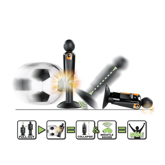 Die EXIT Striker basieren auf dem bekannten und sehr populären Flaschenfußball. Wirf alles in den Kampf um deinen EXIT Striker zu verteidigen während du zu geleichen Zeit dein Bestes gibst um den EXIT Striker deines Gegners umzuschießen. Und mit den EXIT Strikern gehört Schummeln der Vergangenheit an, denn der Striker klappt um und gibt einen Pfeifton wenn er umfällt.