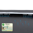 Die doppelkonischen Federn, die gut und gerne 21,6 Zentimeter lang sind, sorgen für einen hohen Sprung und eine schöne weiche Landung. Das einzigartige Entlüftungssystem des Springtuchs und Schutzrandes sorgt für eine offene Struktur, sodass die Luft während des Trampolinspringens einfach entweichen kann. Außerdem hat das Supreme Trampolin von EXIT Toys einen extra stabilen Schutzrand, der 37 Zentimeter breit, 3 Zentimeter dick und mit einem Fußschutzsystem ausgestattet ist. Währen des Trampolinspringens kannst du also nicht mit deinen Füßen zwischen die Federn kommen.