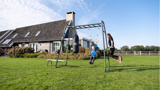 Während die Monkeybar zum Spielen einlädt, macht die Powerstation den Garten noch stärker zu einem Ort für Bewegung. Pull-ups, Dips und Core-Übungen: alles ist im eigenen Garten möglich.