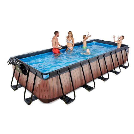Der EXIT-Pool von 540x250 cm ist ein rechteckiger, brauner Rahmenpool mit Abdeckung. Der Pool ist standardmäßig mit einem schwarzen Stahlrahmen und ein brauner Liner mit starkem Holzmuster ausgestattet. Eine Filterpumpe und eine Poolleiter sind bei diesem Pool nicht standardmäßig im Lieferumfang enthalten. Wenn du bereits eine Filterpumpe und Poolleiter hast und einen starken, hochwertigen und gleichzeitig multifunktionalen Rahmenpool suchst, ist dieser Pool von EXIT Toys genau das Richtige für dich!